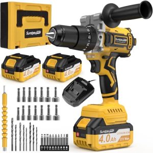 SundpeyPRO Perceuse Percussion Sans Fil 21V, 120Nm Max Brushless Visseuse Devisseuse Sans Fil, Perceuse-Visseuse avec 2 Batteries 4.0Ah, 20+3 RéGlages de Couple, 13mm Mandrin, 2 Vitesses, Led